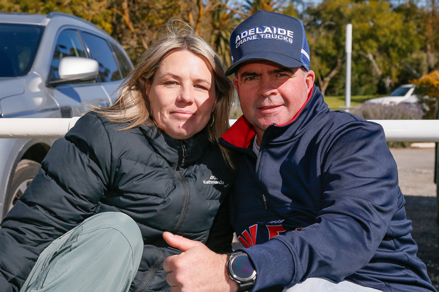 Krystal and Paul Bramwell at the Nuriootpa football on Saturday. (Mark Willoughby: 493920_01)