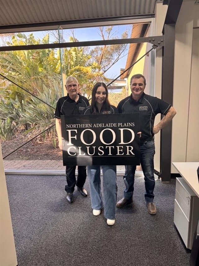 Northern Adelaide Plains Food Cluster’s chair Barrie Lloyd, marketing and events officer Nicolette Colangelo and manager Joe Coluccio. (Supplied)