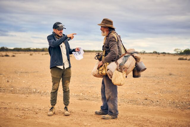 Gawler-based director Matthew Holmes with lead actor Joshua Jaeger on set in Bower, South Australia (Ian Routledge © 2025 Two Tone Pictures)