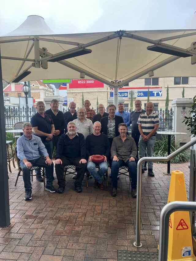 South Gawler's 1975 senior colts team at the recent reunion. Back: Les Mostyn (left), Tony Collins, Mark Nottle, Jim Callander, Stephen Rolton, Gus Barker, Gavin Case and Phil Andrews.