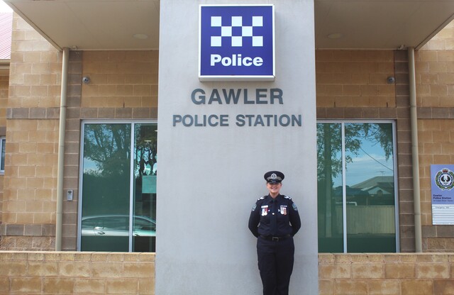 Sergeant First Class Annette Gilbert outside Gawler Police Station. (Mahala Gainer 507177_01)