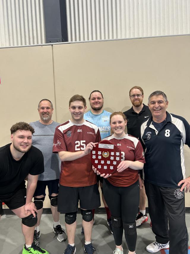 Winter volleyball A Grade premiers Simply Irresponsiballs: Noah, David, Ethan, Lachlan, Caitlin, Tim and Scott. (Supplied)