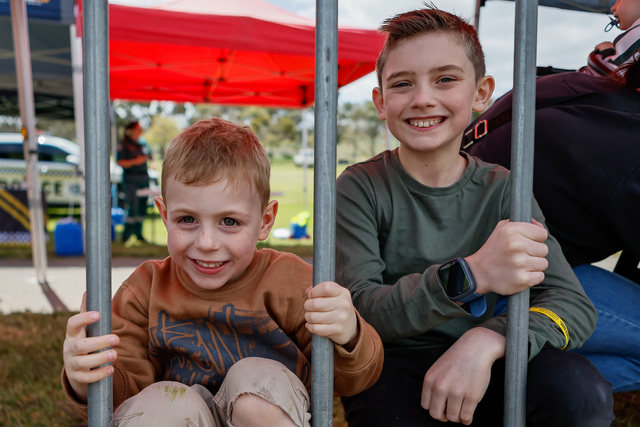 Christopher and Riley await the displays at the Lyndoch CFS day on Saturday. (509897_03)