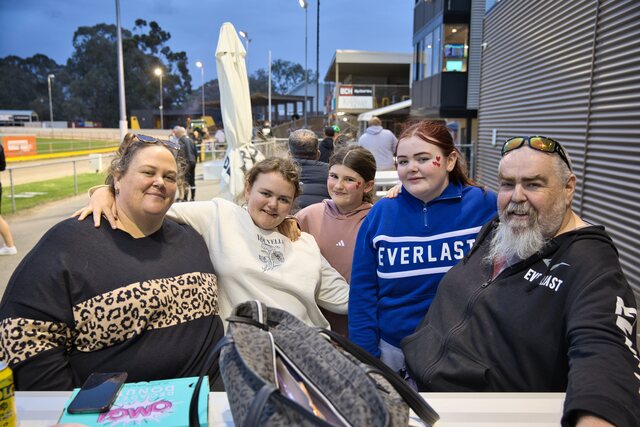 Jasmin Daw, Caidence Gourlay, Amelia Taylor, Savannah Gourlay and Simon Gourlay at the Gawler Greyhound Racing Club on Sunday night. (512974_01)