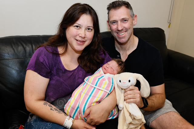 Dary Dawson and Michael Diestel-Feddersen were the first in the state to welcome a baby into 2026, with Callie Louise Diestel-Feddersen born at 12:59am. (Mark Willoughby: 527002_02)