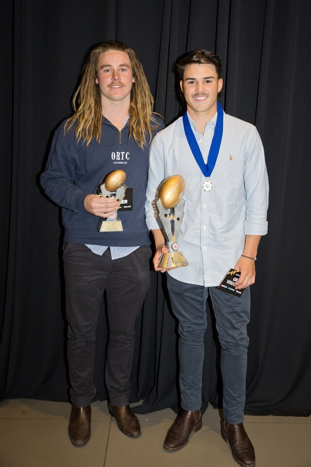 Former league medallist Luke Barnett (left) finished runner-up to Balaklava's Bailey Arthur by one vote in a tight APFL Best-and-Fairest race. (Michael Slattery: 503827_07)