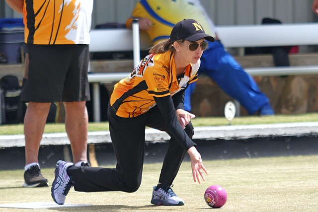 Nuri's Kate Blacksell takes her shot in the Saturday Division 1 competition. (Michael Slattery: 510127_02)